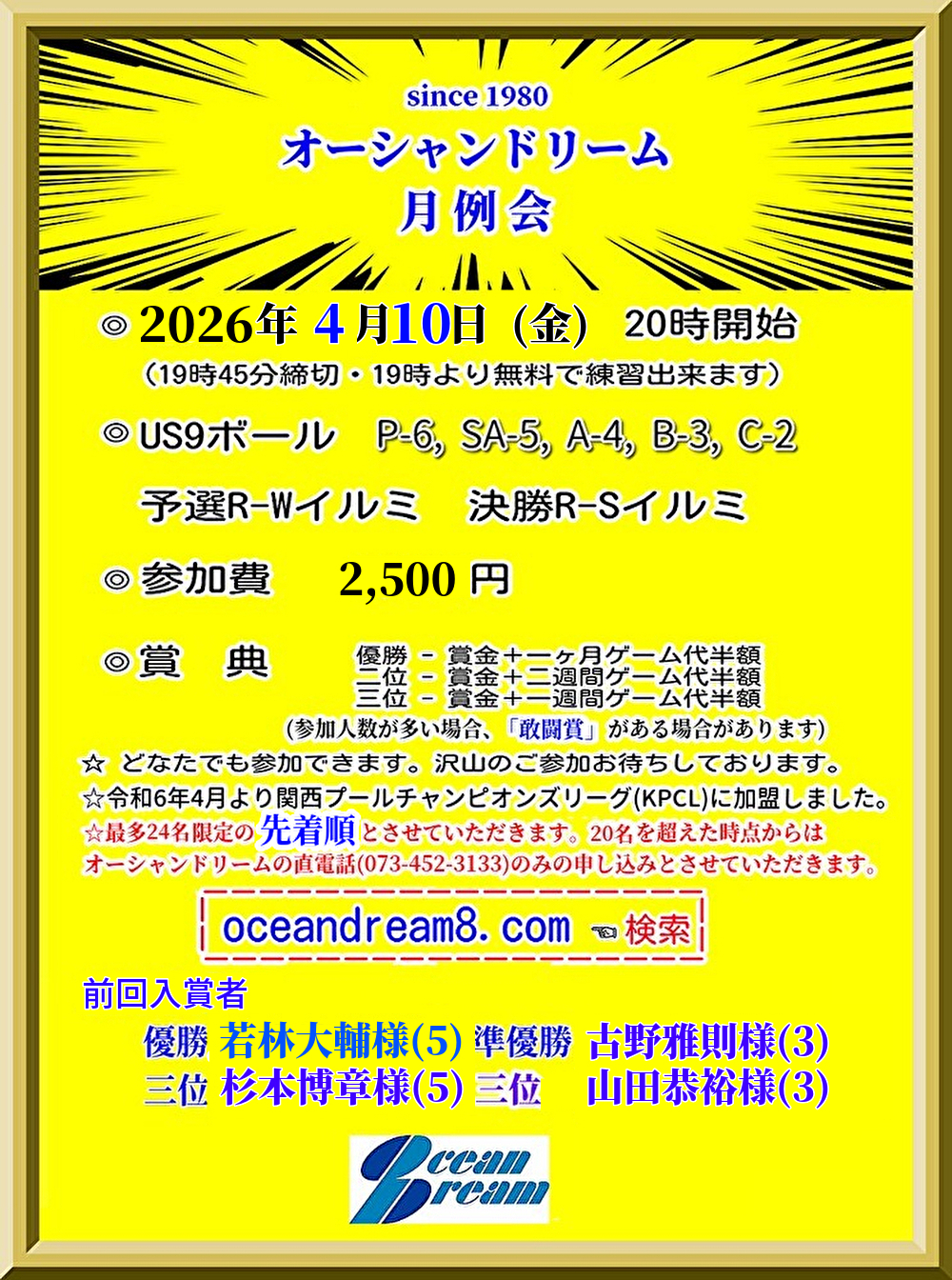 2026年3月17日 / 最終更新日時 : 2026年3月17日 takemoto お知らせ 【告知・オーシャンドリーム月例会】’26.04.10 (金)20時開始 【告知・オーシャンドリーム月例会】’26.04.10 (金)20時開始