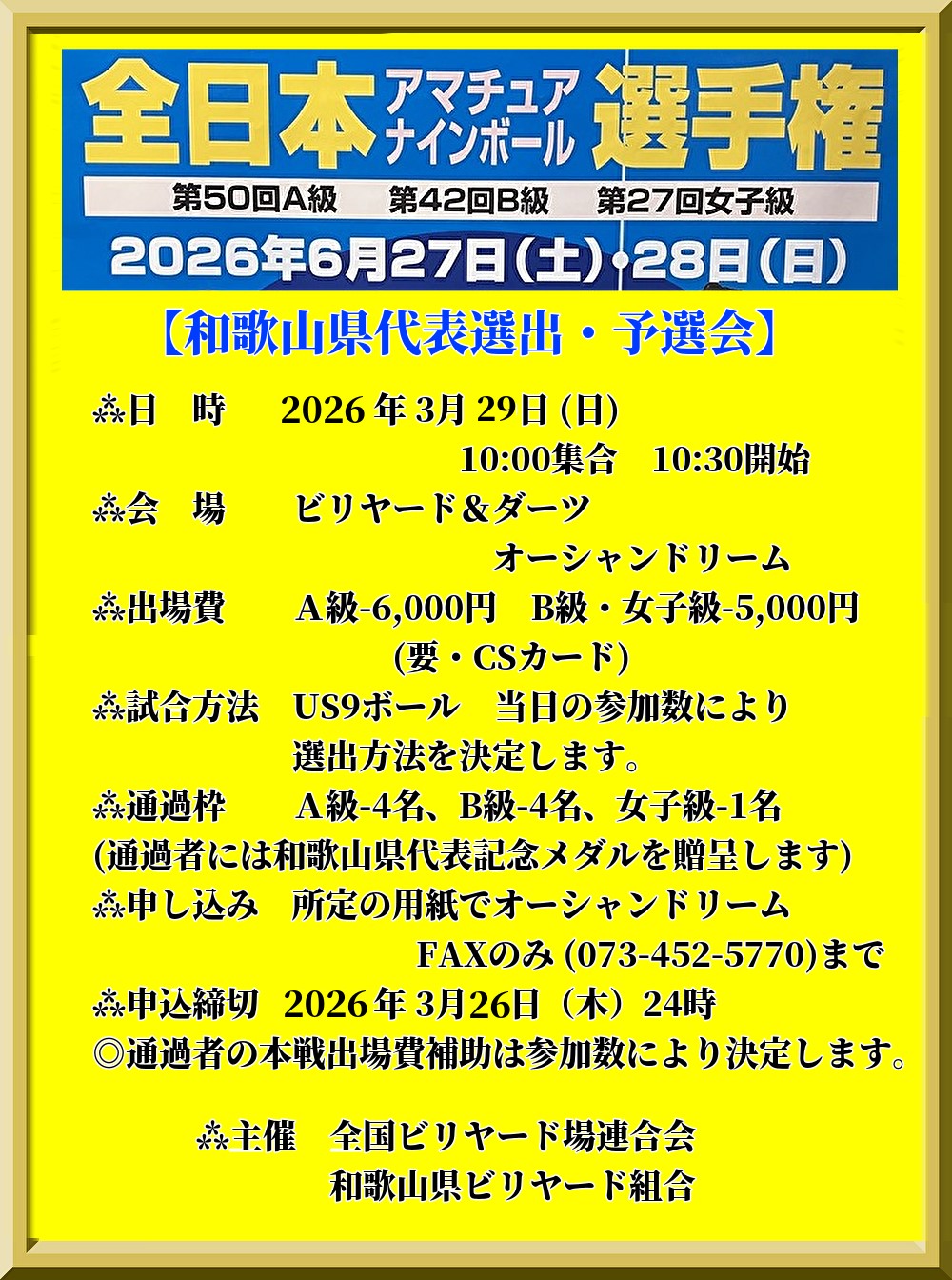 2026年3月17日 / 最終更新日時 : 2026年3月17日 takemoto お知らせ 【告知・全日本アマナイン和歌山予選会場】’26.03.29 AM10時集合 【告知・全日本アマナイン和歌山予選会場】‘26.03.29 AM10時集合