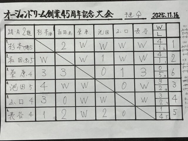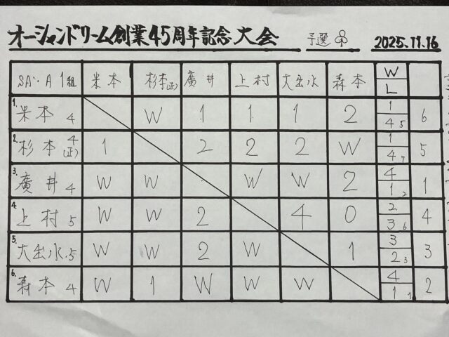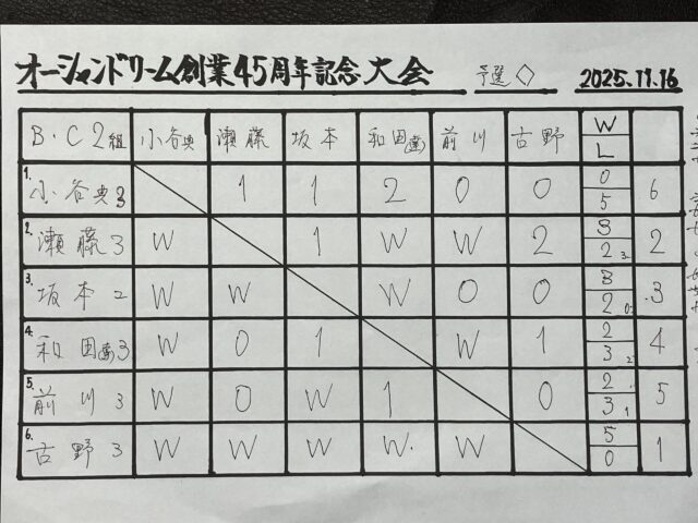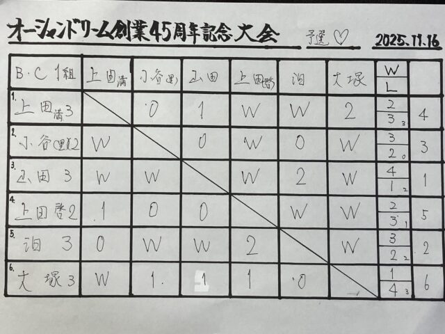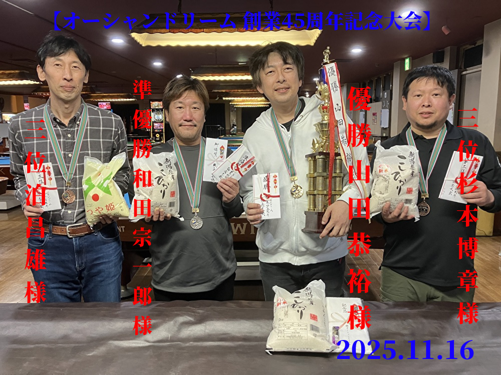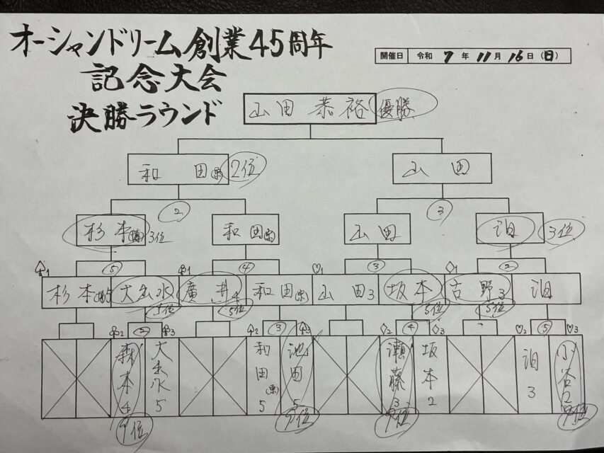 【結果・オーシャンドリーム創業45周年記念大会】’25.11.16(金)