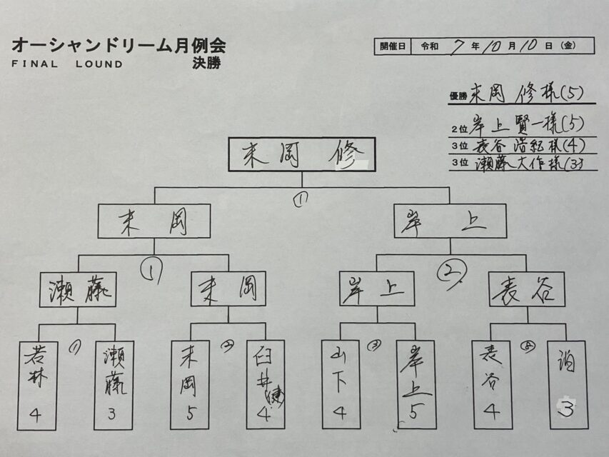 【結果・オーシャンドリーム月例会】’25.10.10(金)