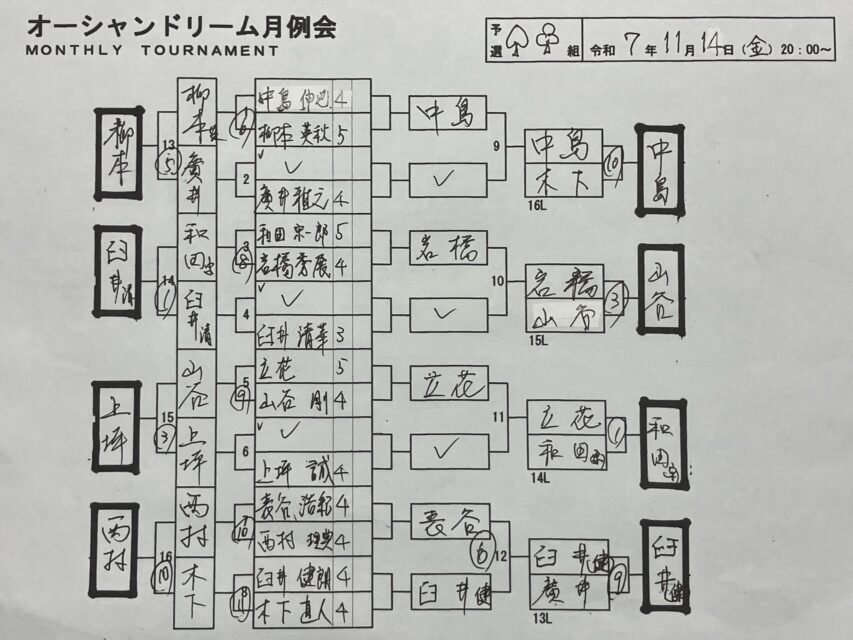【結果・オーシャンドリーム月例会】’25.11.14(金)