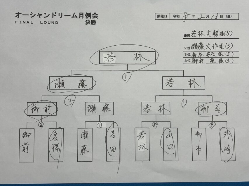 【結果・オーシャンドリーム月例会】’26.02.13 (金)