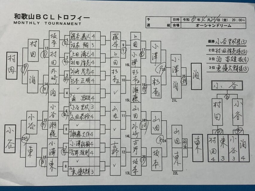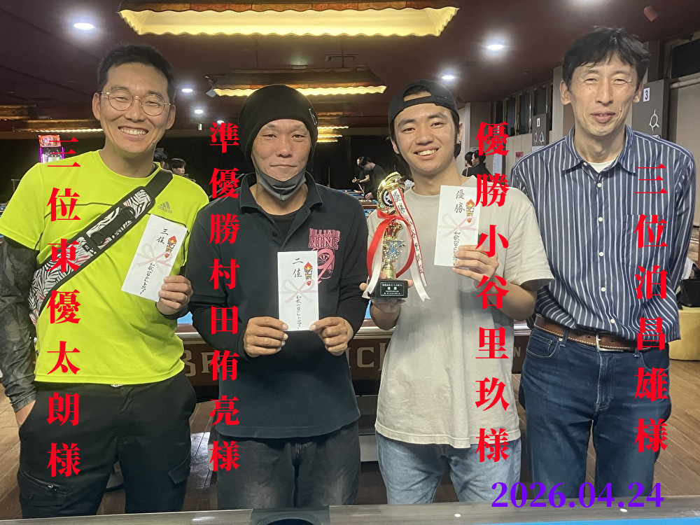 【結果・和歌山BCLトロフィー】令和8年4月24日(金) 優勝 小谷里玖様
