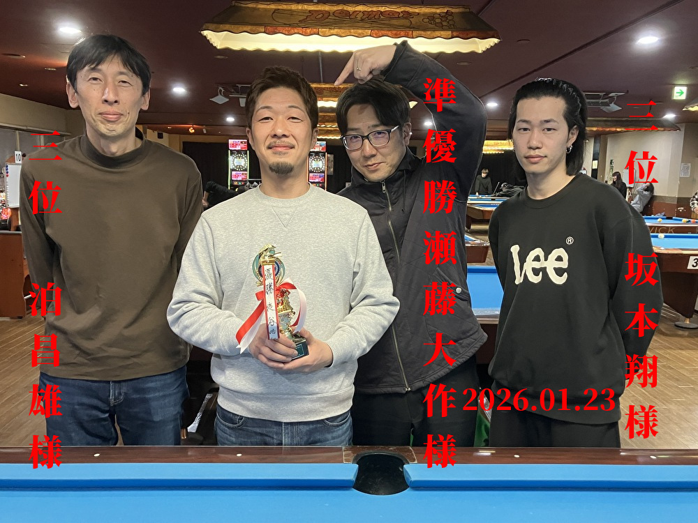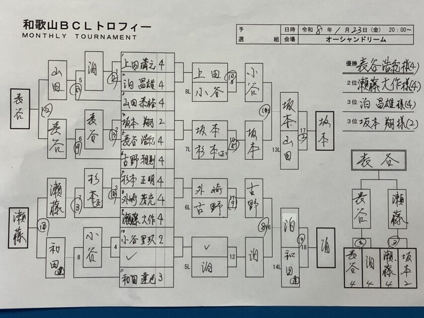 【結果・和歌山BCLトロフィー】’26.01.23 (金) 優勝 表谷浩紀様